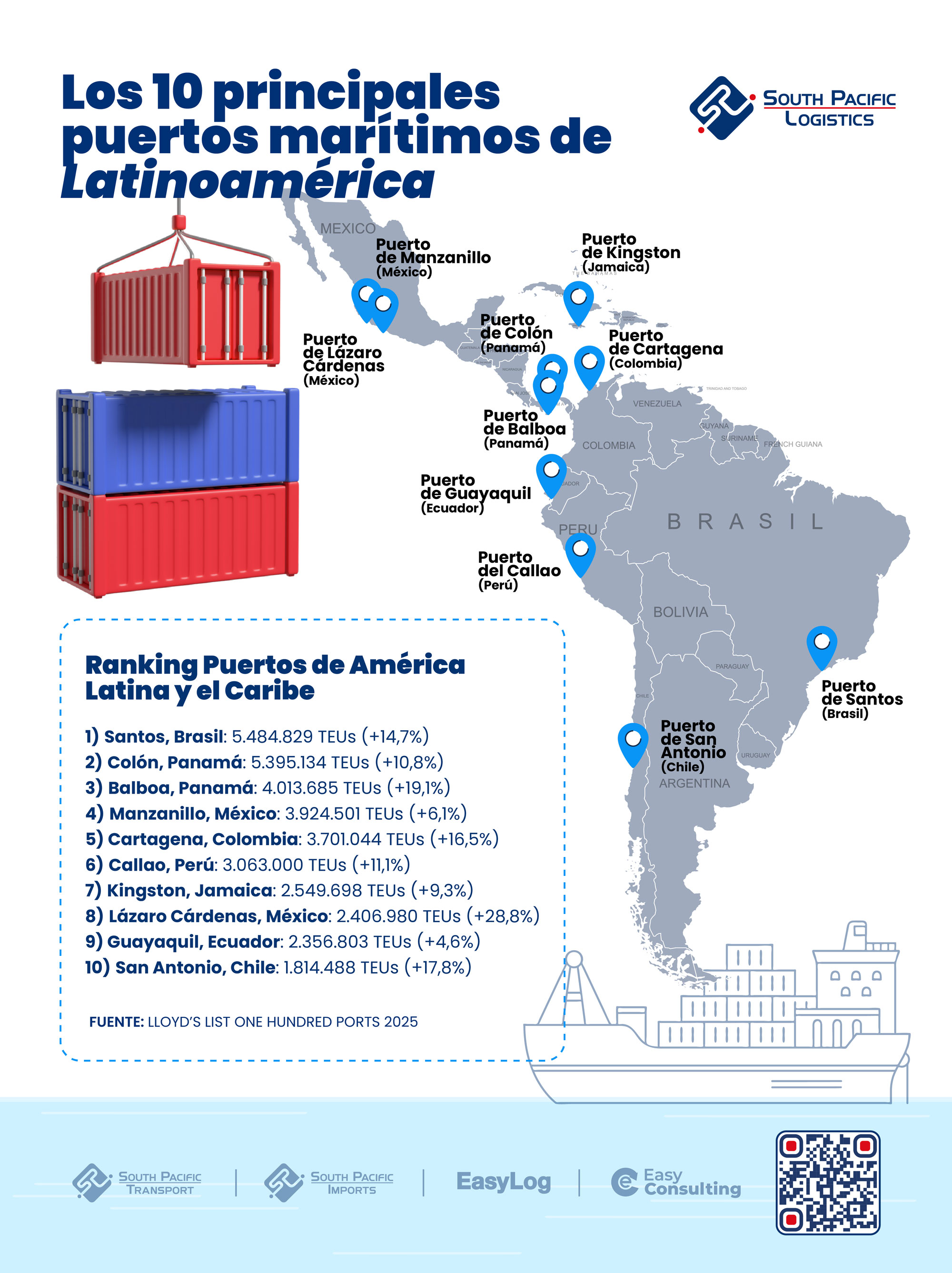 A continuación, revisamos el ranking actualizado de los 10 principales puertos de la región, junto con sus cifras más relevantes.